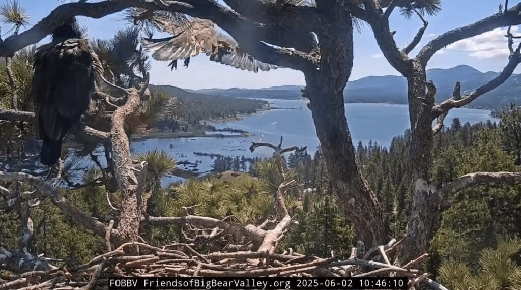 It was a day of celebration (and perhaps some tears of joy) for fans of the Big Bear eaglets as Sunny took flight and left the family nest for the first time.